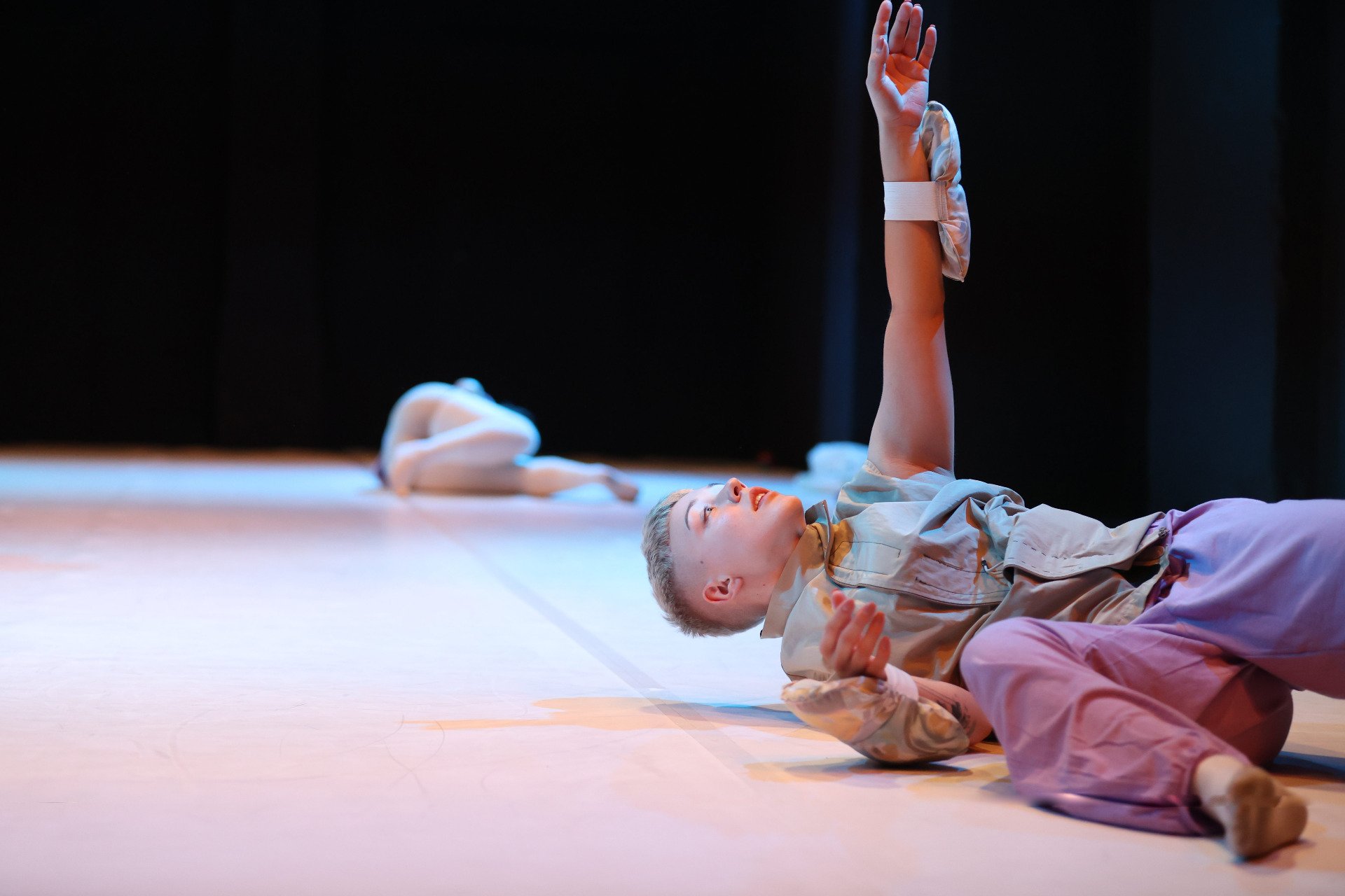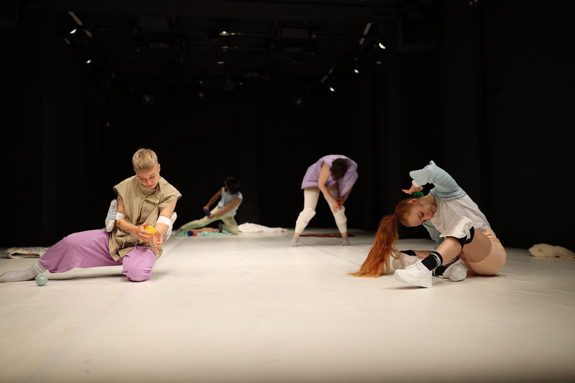 Drei Tänzerinnen und ein Tänzer bewegten sich auf der Bühne zu Soundeffekten und Musik. Es wurde mit Licht und Dunkelheit gespielt, auf dem Boden gewälzt, Föne und Igelbälle wurden eingesetzt und zeigten im Verlauf eine Entwicklung von einer Einzelbeschäftigung hin zu einer Interaktion, zu einem gemeinsamen Spiel. Tänzerisch wurde dargestellt, wie Menschen mit einer Demenz Alltagsgegenstände, wie etwa einen Fön erkunden. Tänzerisch wurde z.B. auch dargestellt, welche Schwierigkeiten beim Anziehen einer Jacke entstehen. Die TänzerInnen waren allesamt sehr überwältigt, wie stark Menschen mit Demenz im Leben beeinflusst sind und wie wenig man davon in der Gesellschaft mitbekommt.